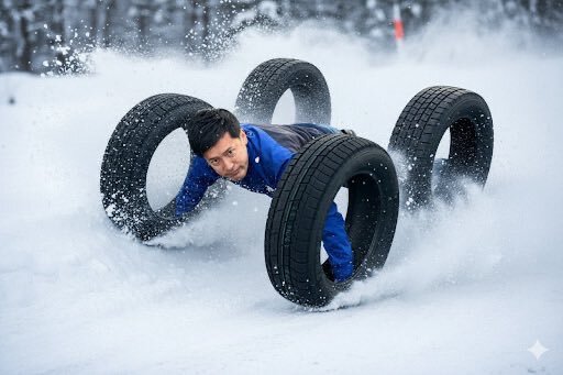 「スタッドレス付けたのに滑るやんけ!」これよく言われますが、スタッドレスタイヤでも滑ります!スタッドレスタイヤは滑りにくい構造のタイヤですが、滑る時は滑ります。スタッドレスを過信しすぎず、安全運転してください。また冬場に夏タイヤで出掛けるなんて以ての外で、更に危険。皆様ご安全に。