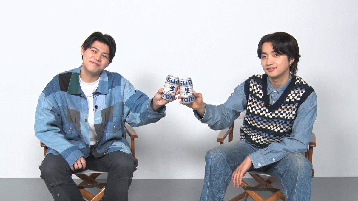 【#サン生と楽曲作ったよ 未公開ショット】 撮影終わりに、#サン生 で乾杯する #JUNON さん #LEO さん。 長時間の撮影でしたが、終始笑顔で現場を元気つけてくださいました🍺 #生FIRST pic.x.com/5r49I4NYWJ