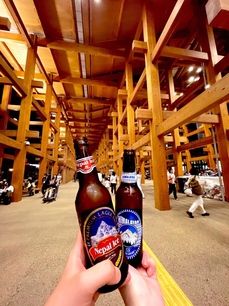 間違えて取っちゃったチケットだったけど通期パス勢の友達が付き合ってくれて、仕事帰りにネパールパビリオン🇳🇵でご飯食べてネパールビール🇳🇵片手にウロウロして遠目に噴水ショーみて帰り大変なことになってタクシーで西九条まで出た…タクシーの運転手さんほんまありがとう… pic.x.com/o5D7auKa0g
