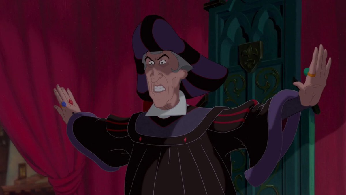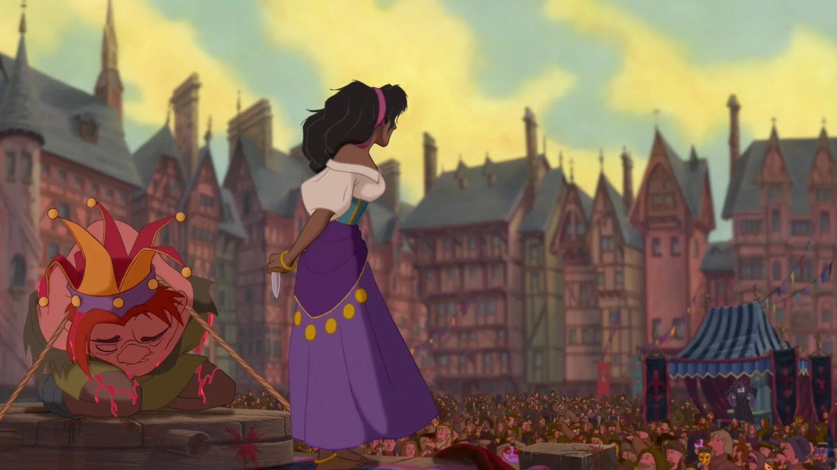 Disney版『ノートルダムの鐘』のエスメラルダがカジモドをかばってフロローと口論になるシーンで 「黙れ!」「黙らない!」ってやり取りがあるんですが、 これ英語だと 「silence!(沈黙を)」 「justice!(正義を)」 pic.x.com/Wox064YUxx
