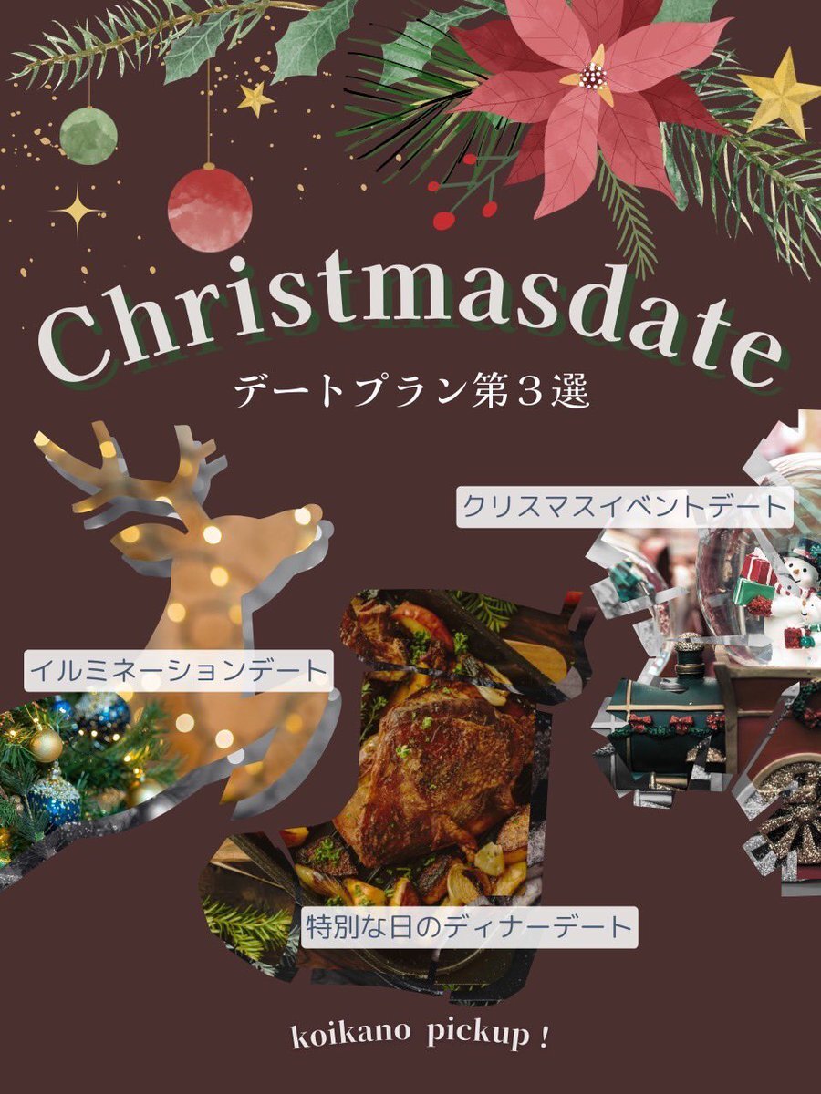 🎀🎄 Christmas date 特集 🎄🎀 〜 とっておきの冬デート3選 〜 1年の締めくくりにコイカノの彼女と ちょっぴり特別なクリスマスを過ごしませんか?♡ ✨おすすめデートプランはこちら✨ ・イルミネーションデート ✴️ ・クリスマスイベントデート 🎁 ・特別な日のディナーデート 🍖🍷 pic.x.com/655RWnWtgD