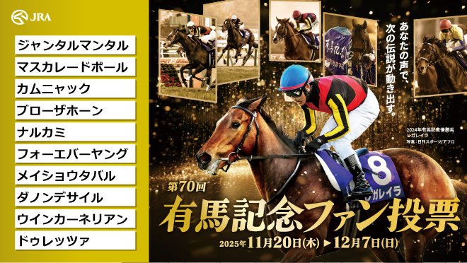 / 第70回 #有馬記念ファン投票 第1回中間発表🏇 \ 第1位 #レガレイラ 第2位 #クロワデュノール 第3位 #メイショウタバル あなたの推し馬は何位? 20位までの順位は👇の画像をタップ! 📢投票は12月7日まで!お忘れなく! arimafan-vote.com #JRA #有馬記念
