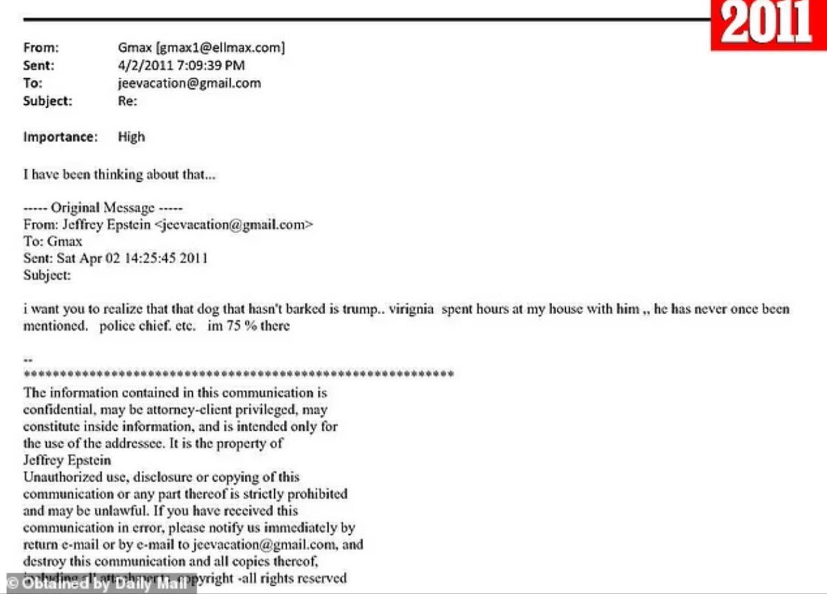 Jeffrey Epstein & Ghislaine Maxwell Targeted Trump; Virginia Giuffre Continues To Vindicate The President! The Dems released an e-mail Jeffrey Epstein sent to Ghislaine Maxwell aka G-Max saying a victim spent hours with Trump at his house and said Trump is the dog that hasn’t x.com/lizcrokin/stat…