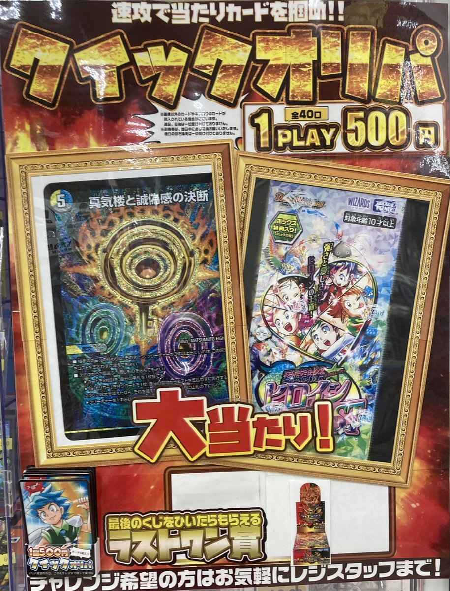 #デュエマ】  🔥🔥デュエルマスターズ🔥🔥 🔥🔥大人気クイックオリパ販売中🔥🔥 1回500円全40口‼ 🔥今回の大当たりは🔥 《真気楼と誠偽感の決断》 《 愛感謝祭 ヒロインBEST》 1BOX 皆様のチャレンジお待ちしてます! pic.x.com/g5Qnndh0Z8