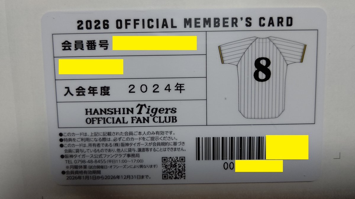 そして2026年度のファンクラブ会員証。 会員歴ももう3年目になるので、これまでのシルバー会員からゴールド会員にステップアップした。 そして「お好きな番号」を、今年のテルアキの活躍にあやかり、これまでの5から8に変更した。 pic.x.com/PjWKpeGH6b