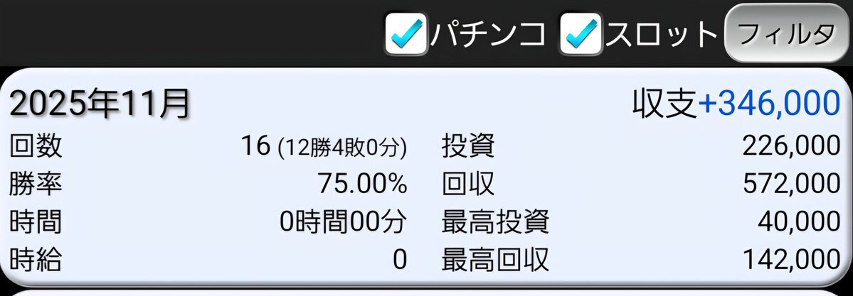 最近ポケカツイ多すぎて本来はただの スロッターアカウントなの忘れそう🤣 明日から12月やから収支リセット‼️ 今月は半月しかスロ行けてない(ポケカのせい🙈) でもしっかり勝ててる💪🔥 12月は飯とか多いからどーしても稼働減るんよなぁ😅 しごおわ行ける日意地でも行かないとっ🎰 pic.x.com/MvHEX6LUW6