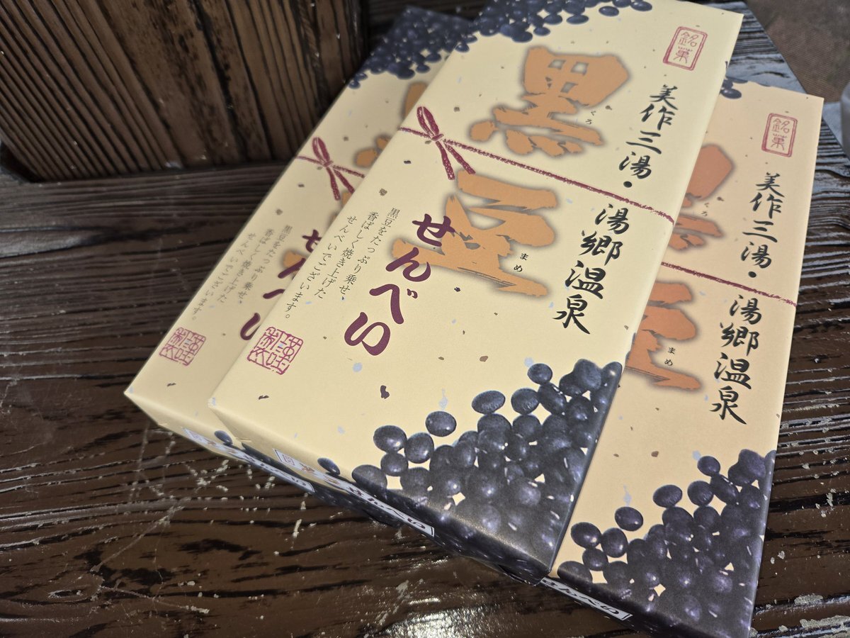 自分用と、(@asami_koki)ちゃんへ用と、ミセス一番くじ頼んでるので、(@OKMQ42mpyt8V2XY)さんへ用 #湯郷温泉 #美作市 #美作三湯湯郷温泉黒豆せんべい #黒豆せんべい pic.x.com/biEq1wRGbO