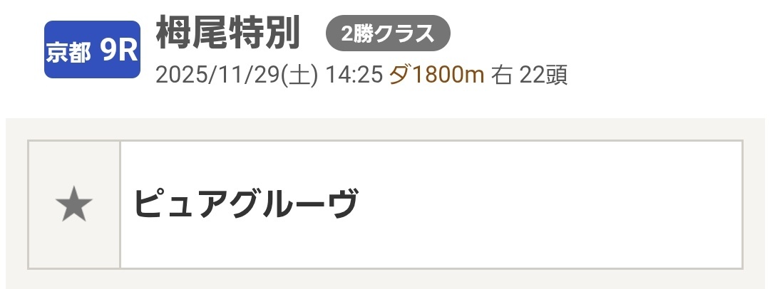 11/29 京都9 📣#ピュアグルーヴ(19人気) エアグルーヴ牝系の5歳牝馬👧 全弟 #ミッキーファイト はGI連勝中🥇🥇 血統的にも主流種牡馬つけ放題と繁殖の前途は明るい😎☝️ 相手はソコソコ揃うが、あと1勝🎖️花道🌸を飾って更に箔がついたら申し分ない応援枠😎📣 pic.x.com/7k4CdhR9d0