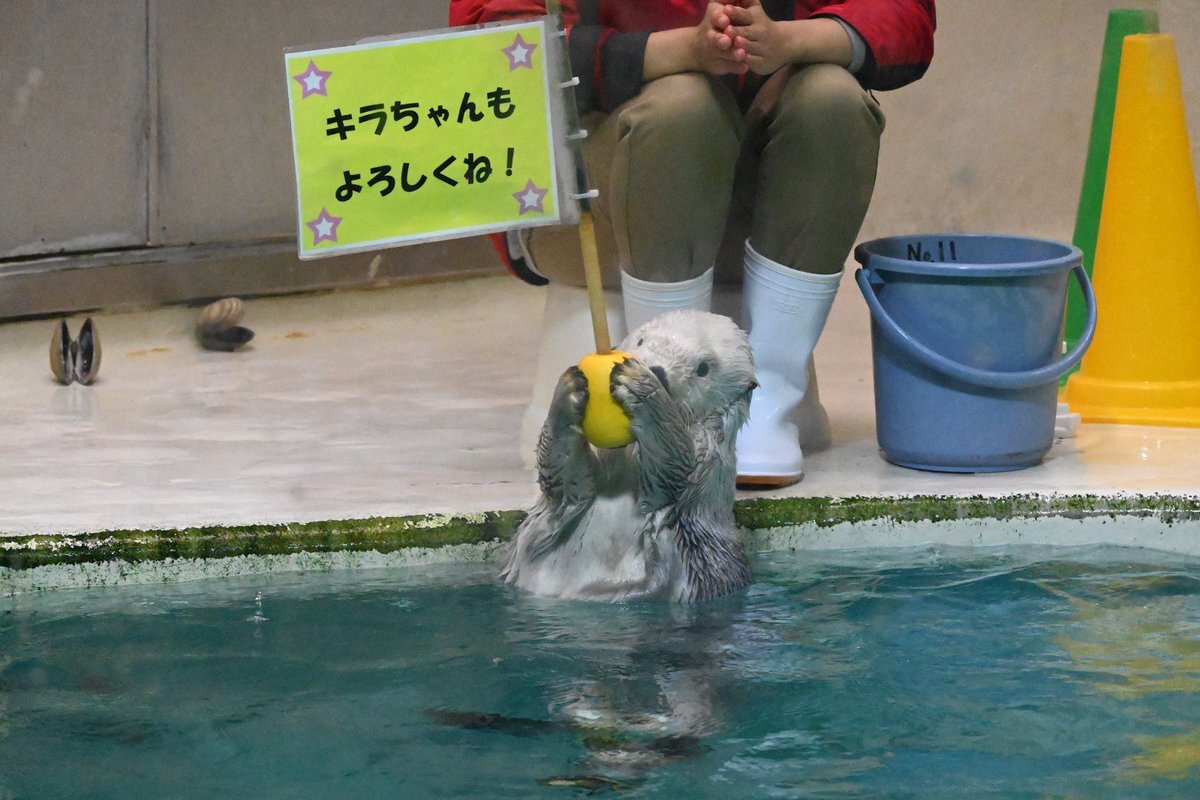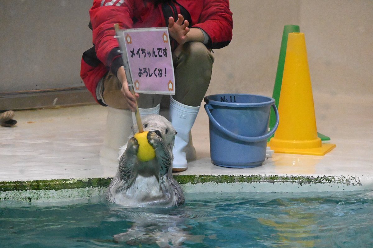 メイちゃんです よろしくね! キラちゃんもよろしくね! キラちゃんです よろしくね! メイちゃんもよろしくね! 前回はメイちゃんしか見れなかったけど今回は両方見れました😊 (2025.12.1📷) #鳥羽水族館 #ラッコ pic.x.com/U5DPiocYC2