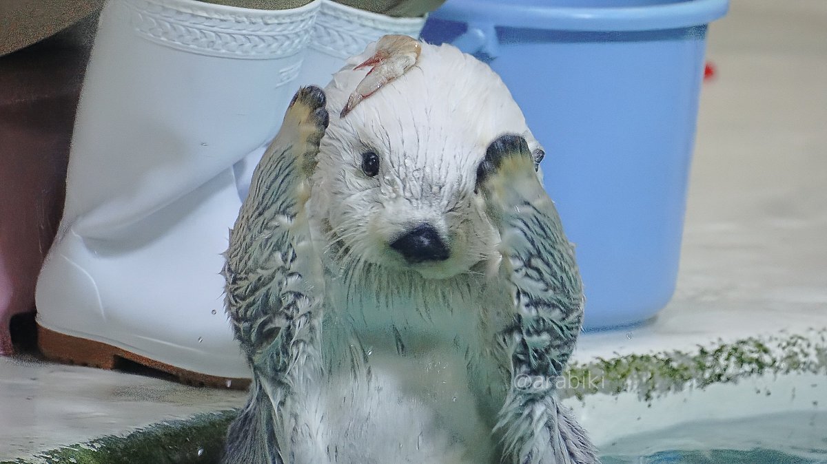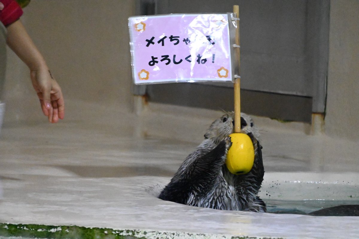 一緒にコーンを持つんだよ、と渡されてるのに「私じゃなくてキラちゃんが持つんでしょ?」とキラちゃんに半ば強引に渡してしまう所はいかにもメイちゃんらしい #鳥羽水族館 #ラッコ pic.x.com/OO67f9N5ZR