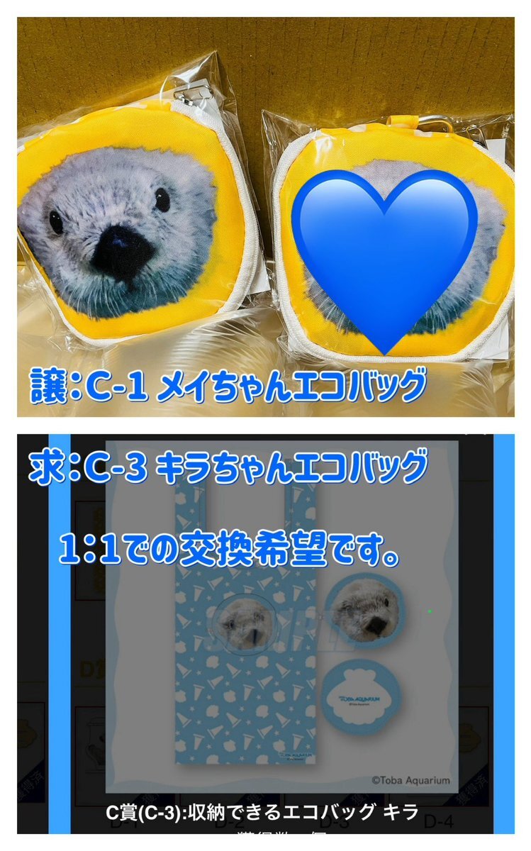 【交換】🦦 鳥羽水族館 カプくじ ラッコのメイちゃんくじ リターンズ 譲:C-1 ×1個 求:C-3 ×1個 ※交換の場合、同賞同士での交換希望です 交換(郵送) もしくは 定価(+送料)でのお譲り、買取 ※相談の上、都内手渡しも可能です 是非よろしくお願いいたします! pic.x.com/109YfbKDAZ