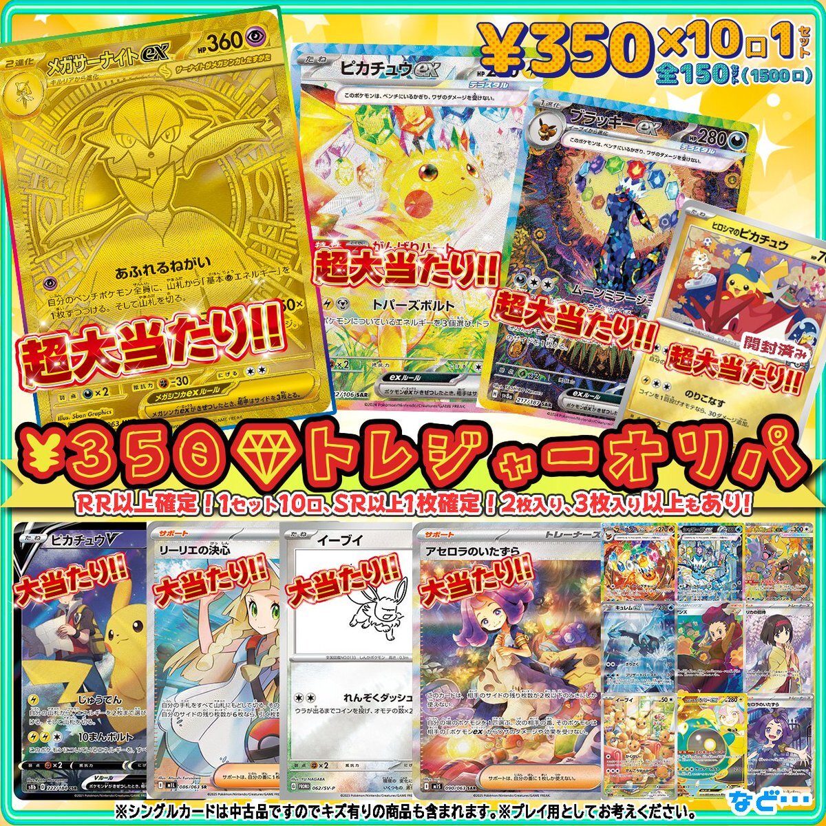 ============= ¥350💎トレジャーオリパ⑧ ============= 350円で夢を掴め🎯 大当たりは… 🎖メガサーナイトex MUR ⚡ピカチュウex SAR 🌙ブラッキーex SAR 🍁ヒロシマのピカチュウ 🔥1set10口RR以上確定‼ 🌟SR以上1枚確定❣2枚、3枚入りも⁉ 8man.base.shop/items/124883061 pic.x.com/TrHm7Nd34j