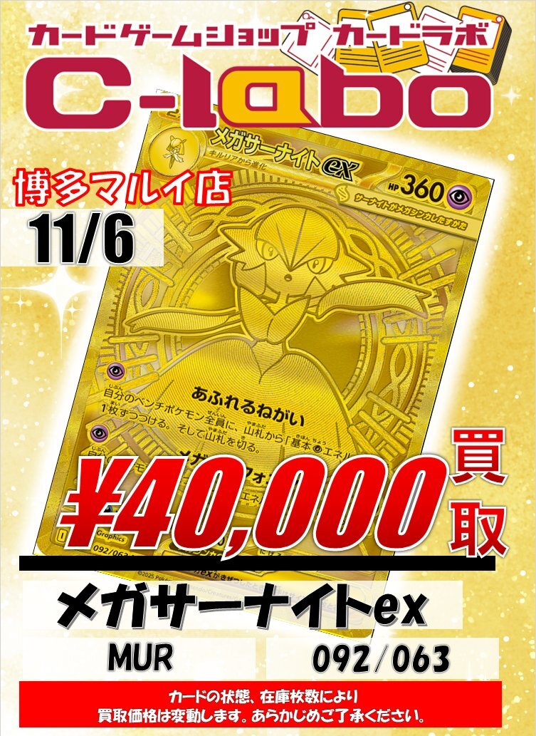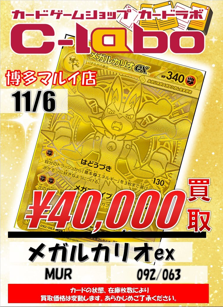【#ポケカ 買取情報】 『メガサーナイトex』『メガルカリオex』MUR 買取を大大大大ッ募集です!!!!!!! ぜひカードラボ博多マルイ店までお越しください! #ポケモンカード pic.x.com/sEIu37y80c