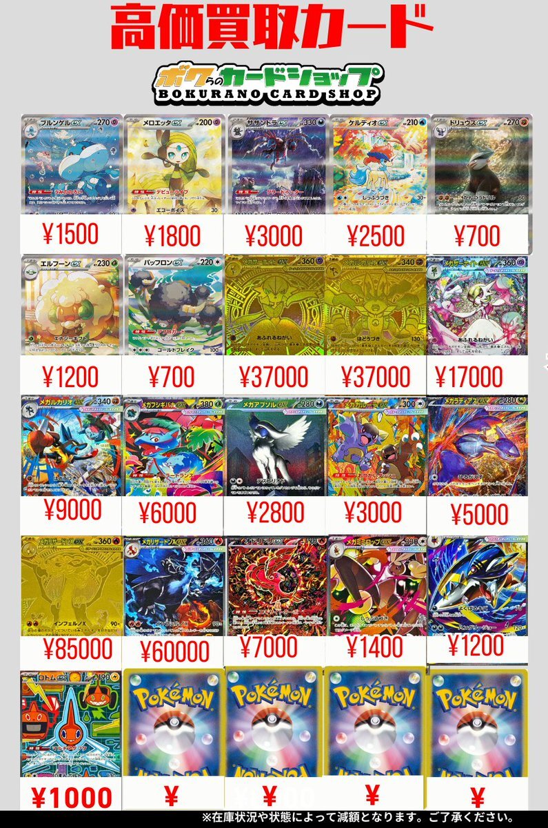 \ 買取情報 / ▼注目カード高価買取中 ✅メガリザードンXex ¥85,000 ✅メガサーナイトex MUR ¥37,000 ✅メガルカリオex MUR ¥37,000 現行のカードも大募集中✨ pic.x.com/MZPU47NIW9 x.com/bokurano_card/…