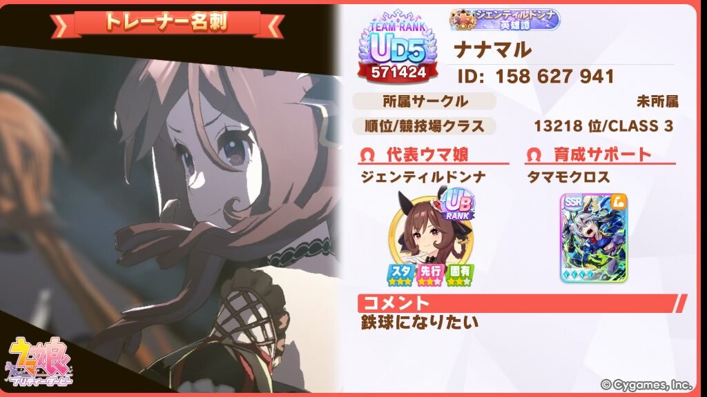 最近復帰した勢 ジェンティルドンナ推し‼️ メジロ家箱推し‼️ 気ままにプレイしながら課金を楽しむタイプ😎 仲良くしてや〜 #ウマ娘好きと繋がりたい #ウマ娘 #ゲームウマ娘 #トレーナー名刺 pic.x.com/DRcH2iKuJR