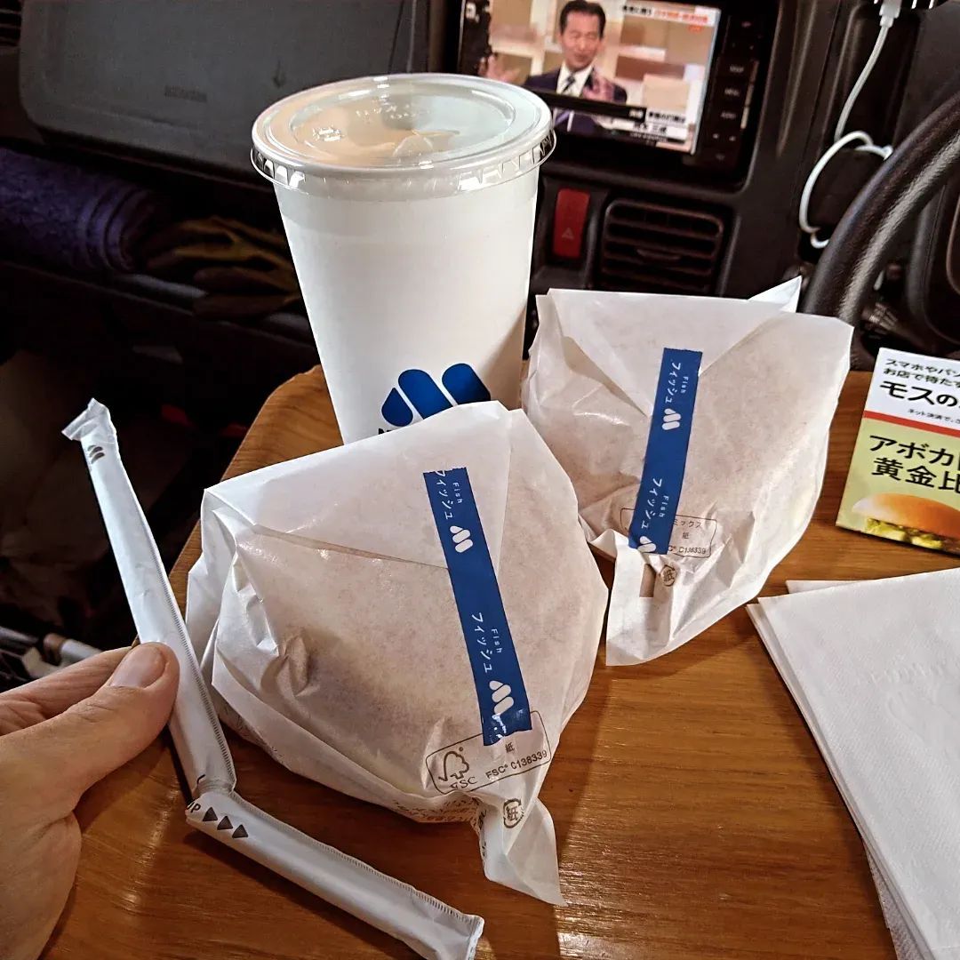 熊本市内配送完了♡帰りにモスバーガーに立ち寄りフィシュバーガーとバニラシェイクをテイクアウト!車中で食事 #モスバーガー #フィシュバーガー #モスシェイク #モスシェイクバニラ #モスシェイクバニラm #モスバーガー福岡八女店 pic.x.com/Dxn7GA2GAE