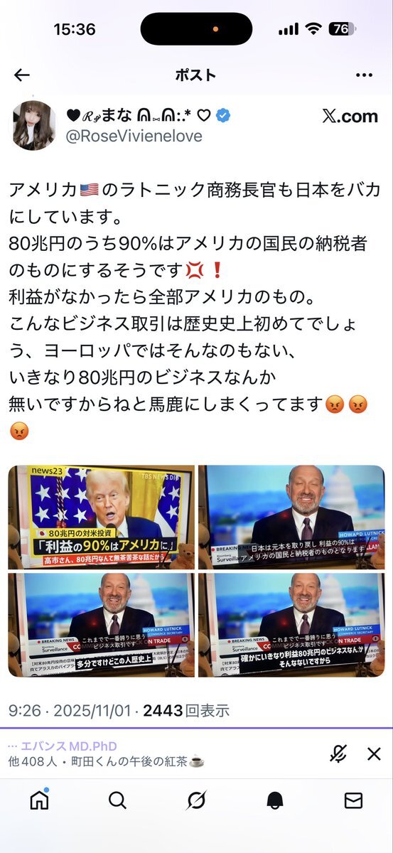 ラトニック米商務長官インタビュー「日本の80兆円投資、米インフラに」 80兆円あれば激安移民を大量投入せず 日本国民の懐を潤しながら日本のインフラが整ったはず🤬🤬🤬 【米国関税】80兆円カツアゲ確定「なめられてたまるか」イキがった代償は国民へ… kosodatefurefure.ldblog.jp/archives/94158…