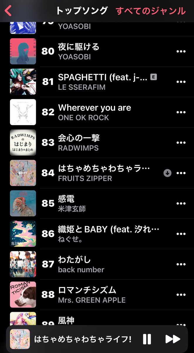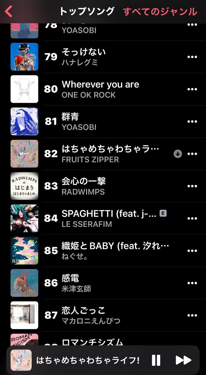 2025 11/30 Apple Music🍎トップソング ↑82位 はちゃめちゃわちゃライフ! ▶️ music.apple.com/jp/album/%E3%8… 圏外 わたしの一番かわいいところ (レコ大2023最優秀新人賞受賞作品) (MAJ2025最優秀アイドルカルチャー楽曲賞受賞作品) ▶️ music.apple.com/jp/album/%E3%8… #FRUITSZIPPER #祝紅白歌合戦 pic.x.com/RJ2KVMnfso x.com/hk1130hk/statu…