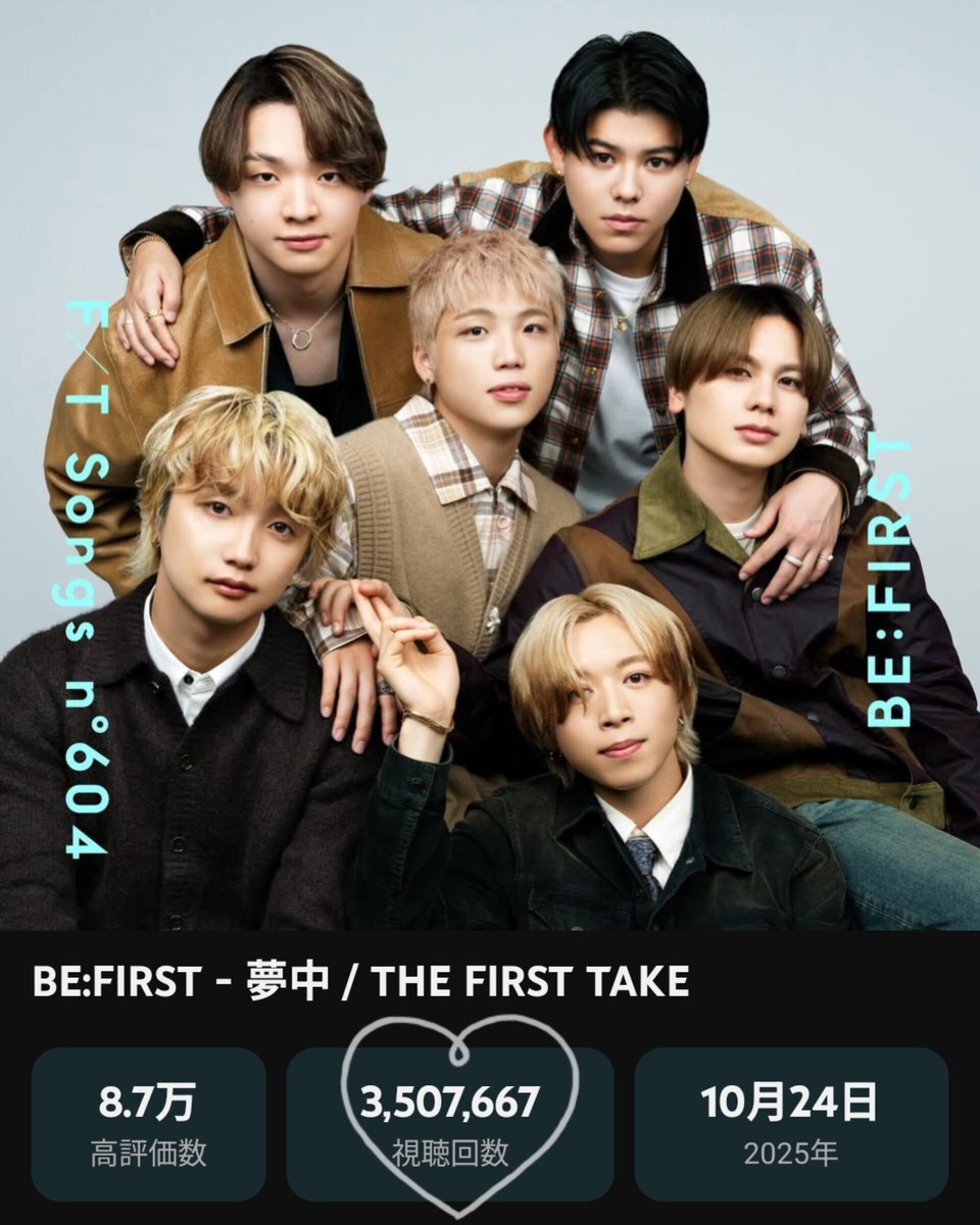 350万回再生突破おめでとう💖 素敵な歌声と表情に釘付けになる… レコ大にも選出こっちももっと沢山聴いてもらいたいな #BF_夢中 BE:FIRST -夢中 / THE FIRST TAKE youtu.be/rVdKC3PU434?si… pic.x.com/xWPTOcedWN