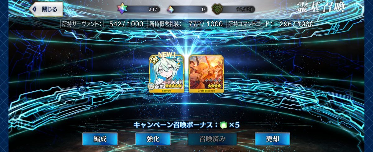 FGO、⭐️5の司馬懿(ライネス)が欲しくて10連回したら虹回転して「よっしゃ!大勝利!!」って思ったらロウヒちゃんがすり抜けだった😅 オマケでへファイスティオンも来て、2人とも宝具レベル上がったけど…違うんだよ(笑) pic.x.com/8Kz0vI1gy8
