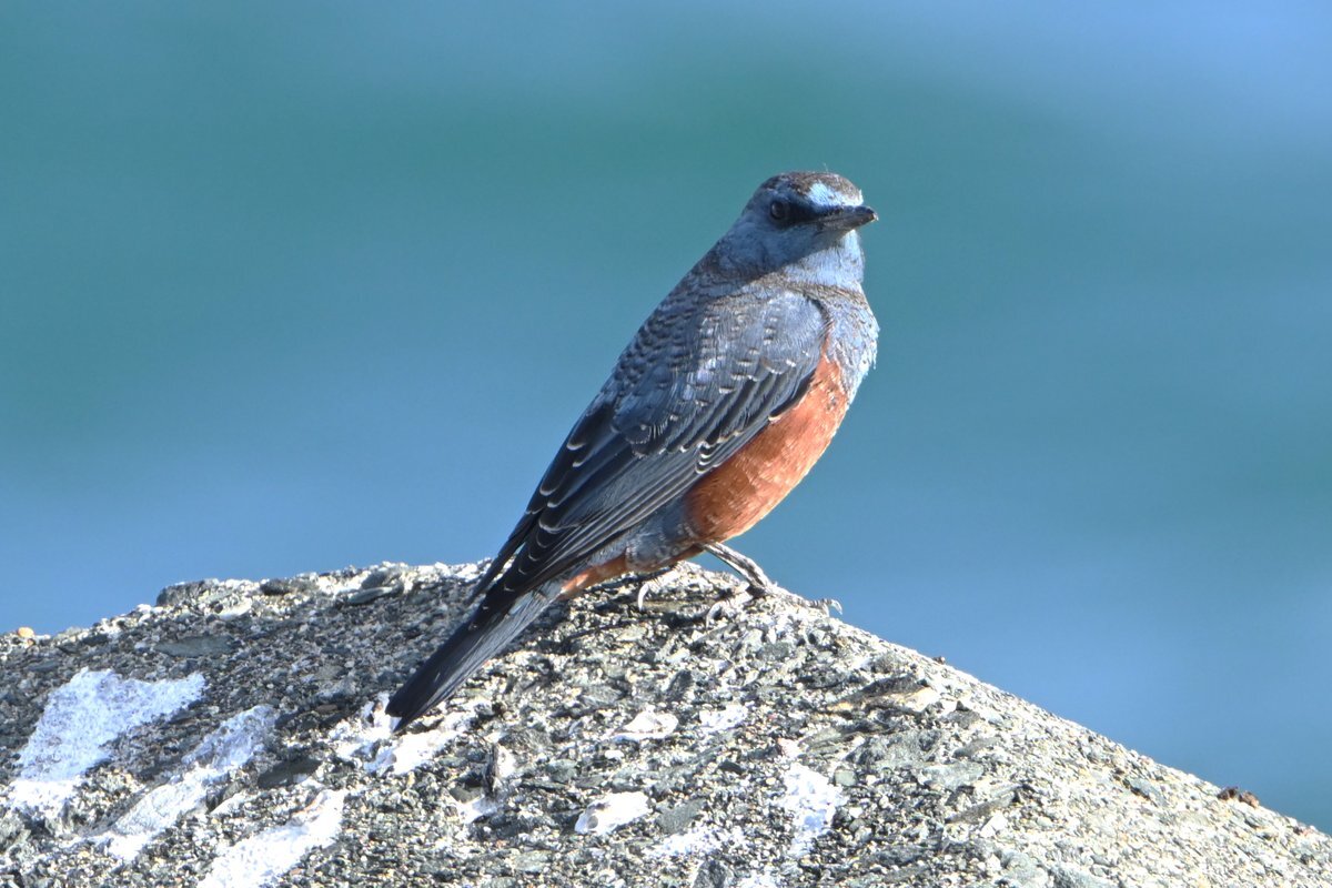 #イソヒヨドリ 海岸沿いの駐車場で海を眺めながら昼食中に目の前の岩に!慌ててリュックからカメラを取り出し、ドアをそっと開けてワンカット撮影したところで観光客がスマホで撮影しようと不用意に近づき姿を消しました。 pic.x.com/hmFAY4skCd