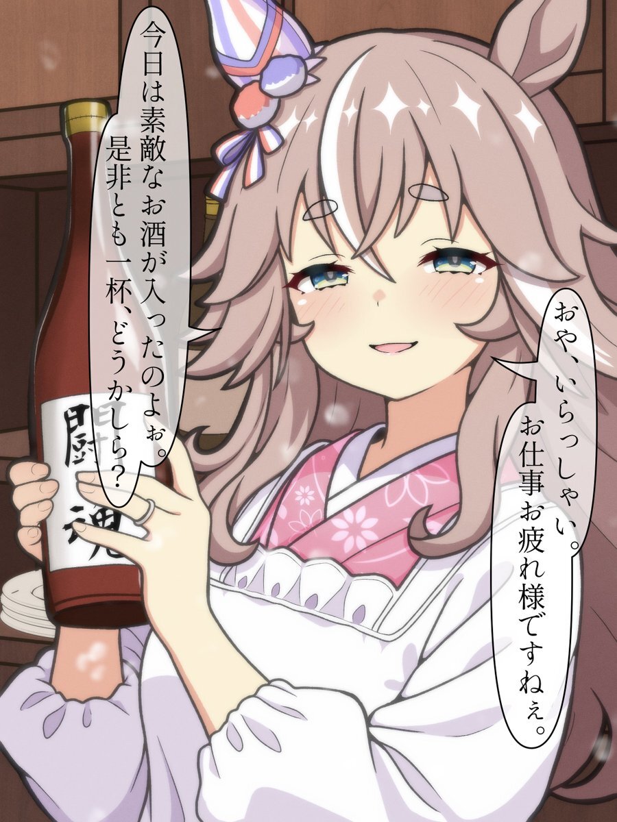 #ウマ娘 #umamusume #ワンダーアキュート 引退後アキュートさんトレ結婚後料理屋概念 大根のお漬物が絶品と噂の、街はずれの小料理屋。 女将に懸想する人もいるが、薬指の指輪の輝きが、その想いを穏やかに鎮めさせる。 昔はアスリートだったらしく、夫はその当時から支え続けてくれている人らしい。 pic.x.com/O2aVh2FTMQ
