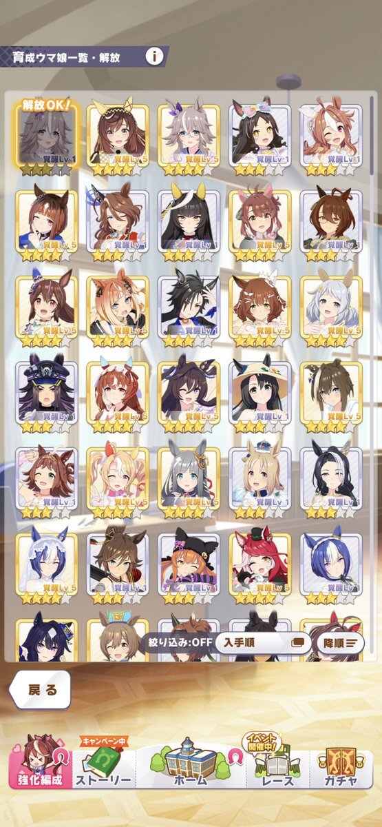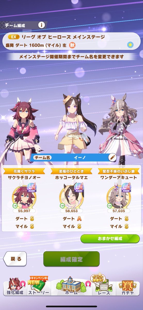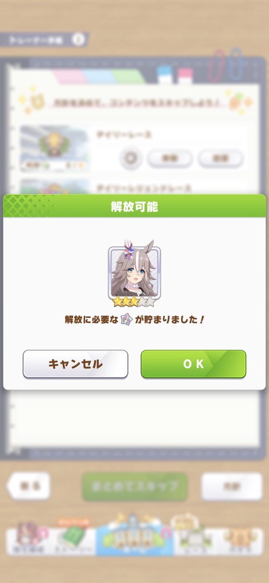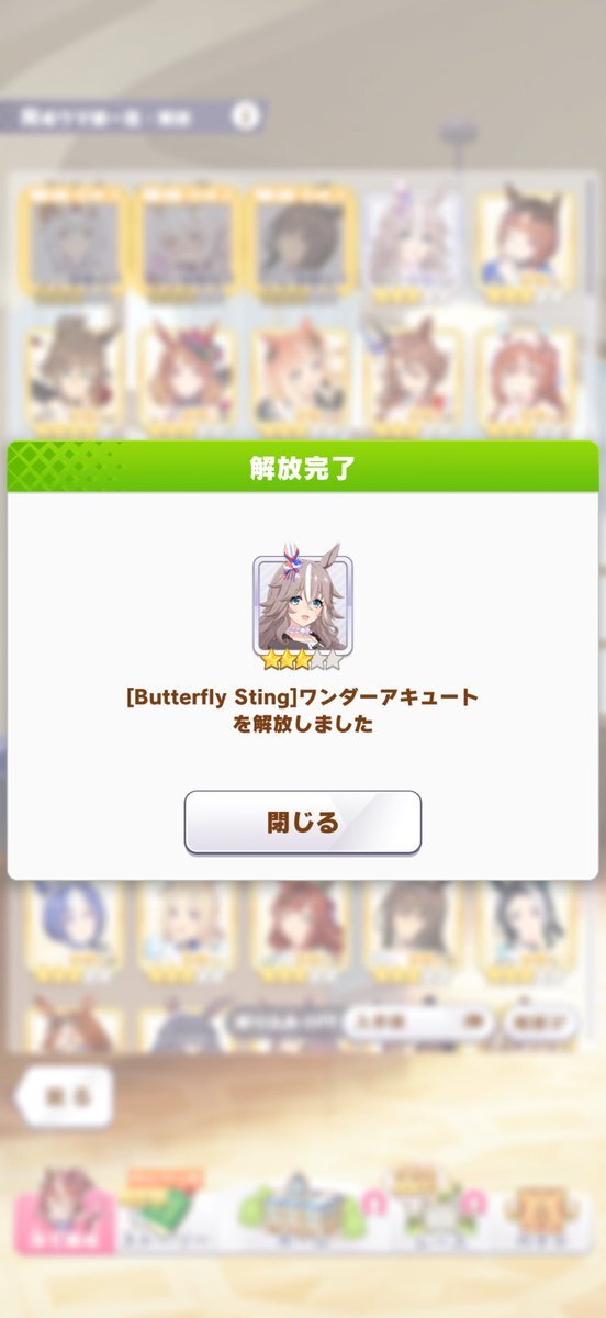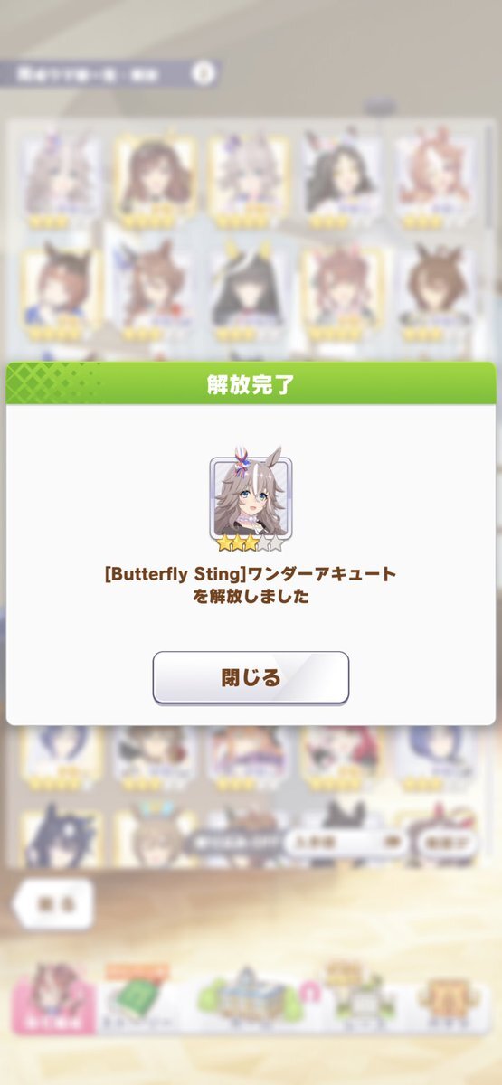 最初は57人目ワンダーアキュートお迎えー。しかも今デイリーレジェンドで解放途中だったので一気にすっ飛ばしてのお迎えなので、タイムリー決まりました。貴重なダートですが芝G1勝利のファン活美味しそうです😀 #ウマ娘 #ワンダーアキュート pic.x.com/DHISBqKuSi