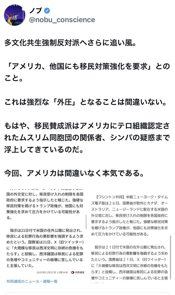 返信先:@Hongnumongol99トランプ大統領は 他国にも移民対策強化を要求しているので、日本もやることになるでしょう。 衆議院「改革の会」の3名が、自民党に入党する為、与党は過半数超えることになります。 これからの政策はやりやすくなるでしょう。 【衆議院与党が過半数超え 読売新聞】 newsdig.tbs.co.jp/articles/-/231… pic.x.com/PvjZHsKds0