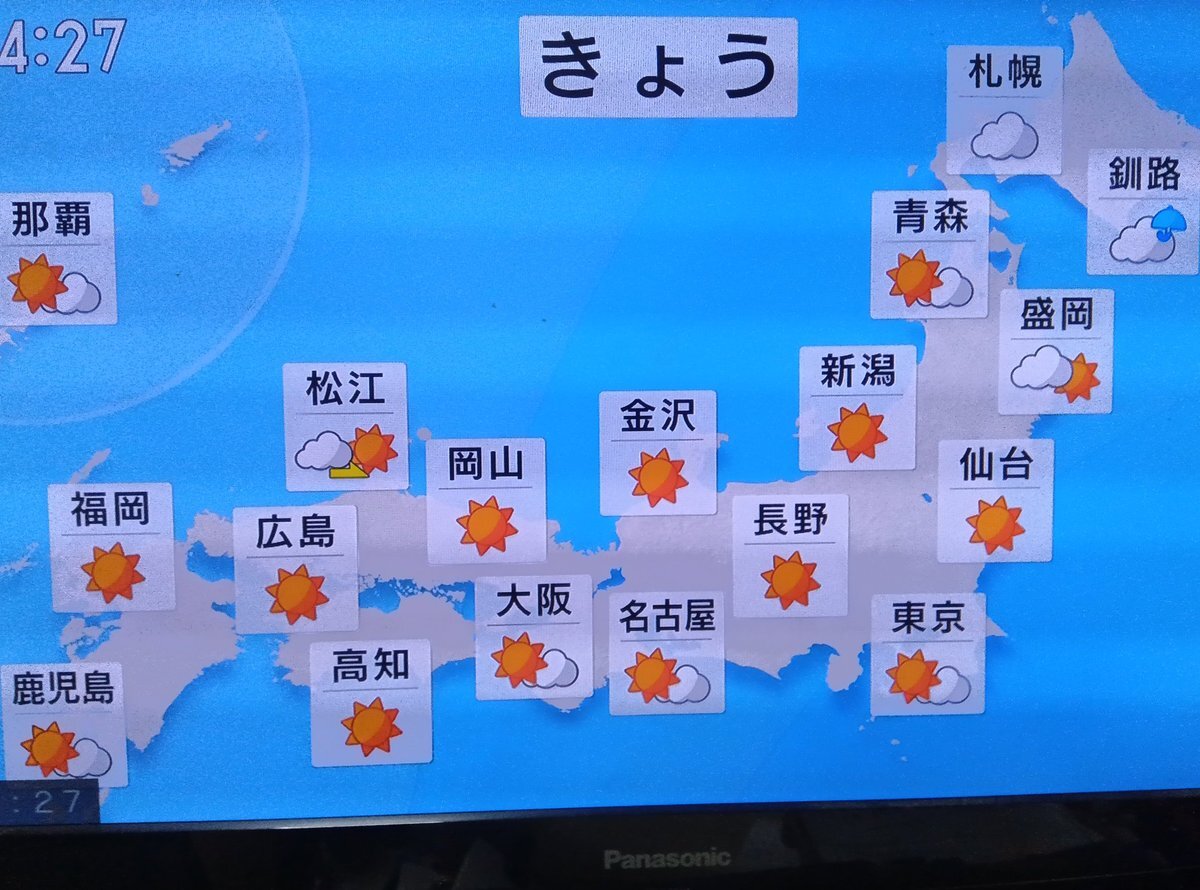 皆様おはようございます🌅 本日の天気は 東北から九州にかけて、日本海側は☀️ 太平洋側も☀️だが 関東や東海、四国、九州南部は夜になると☁️ 沖縄も☀️だが、所々で☔ 北海道は☁️ みたいです 平日ラスト✨ 自分のペースで頑張りましょう🎶 #おはようVtuber #Vtuber準備中 pic.x.com/tEWGswMunz