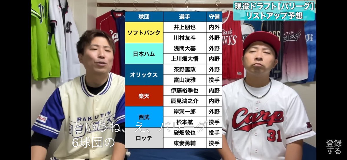 ・1B/OF兼任できる人の少なさ ・野村勇をSSと考えた場合の3B争い この2点から1B/3B/LF/RF全て守れる井上朋也はまだ出されないという予想