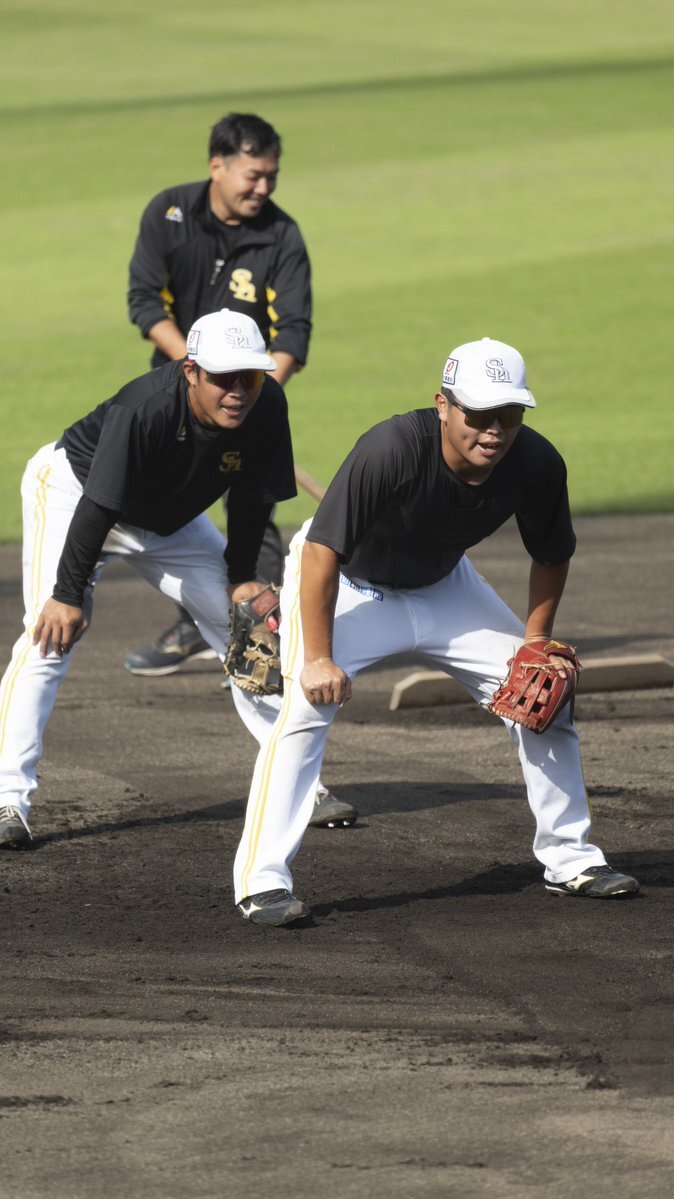 秋季練習🔥 三塁でノックを受ける #井上朋也 選手と #石塚綜一郎 選手! #sbhawks #鷹フル pic.x.com/5bjr7jQldq