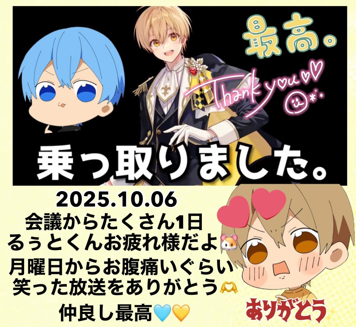 #るぅとくん 🐹💛🩵🫶放送ありがとう⸝⸝⸝⸝♡ 月曜日1日会議からいっぱい お疲れ様でした!! 乗っ取りるぅとくんからはじまり わたしのきもち たまアリバージョン!! るぅとくん作り直すのかな?👏👏 今からめちゃくちゃ楽しみ です。ころんくん弾き語り練習 してくれたらいいですね (〃´-`〃)♡ pic.x.com/gNAe61FUTp