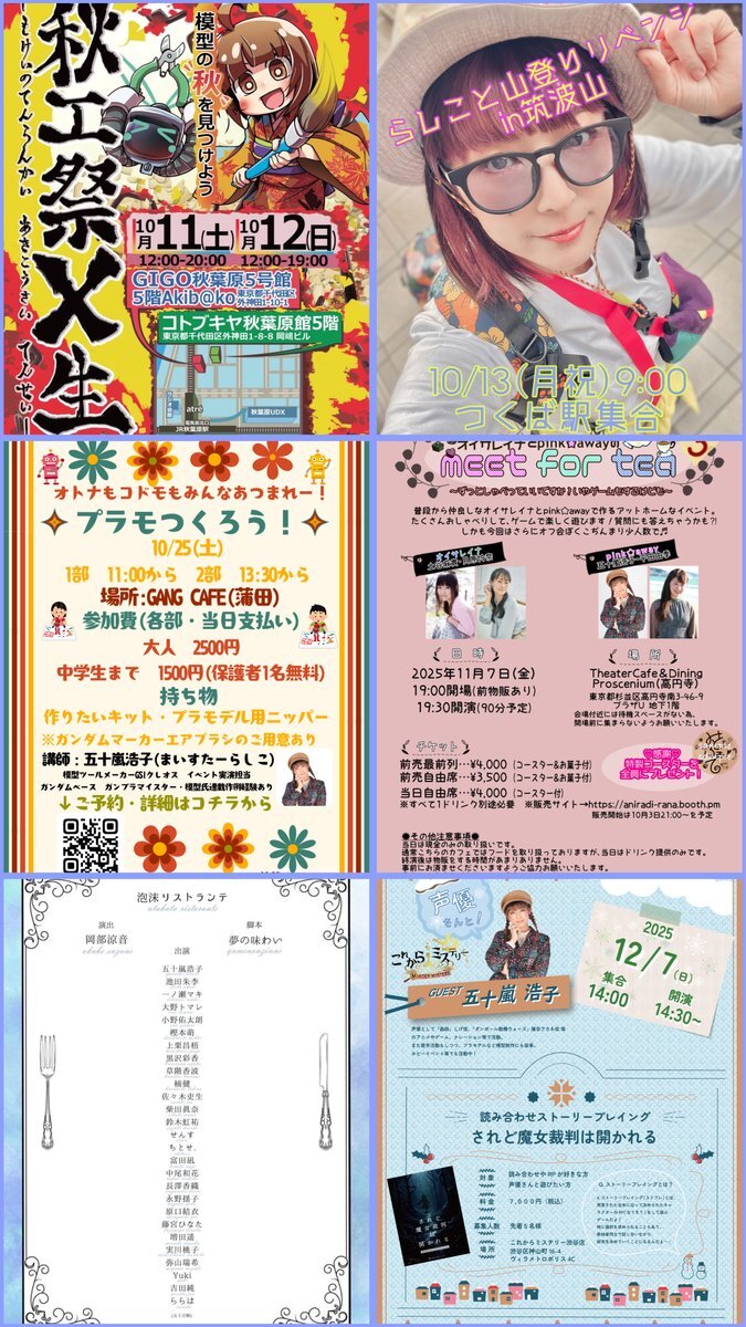 【🎪今後の予定🎪】 10/11(土)アート&クラフト市 10/11・12 秋工祭X生 10/13筑波山🏔´- 10/18・19 全日本模型ホビーショーatGSIクレオス 10/25プラつく&忘年会 11/7みとふぉて 11/15・16 デザフェス 11/27~30 朗読劇『泡沫リストランテ』 12/7 昼ストプレ会・夜 地味ん狼 pic.x.com/Ka2oVQlS1Q