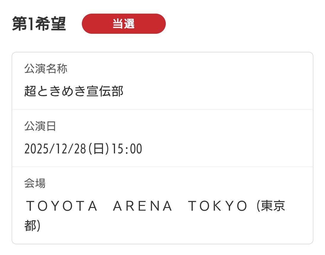12月27日は仕事納めで行けないのが確定しているので、28日だけでも確保できて良かったです😊 スッキリした気持ちでときクリに参加できるように仕事頑張る! #ときクリ #超とき宣 pic.x.com/FjLZeeBrpb