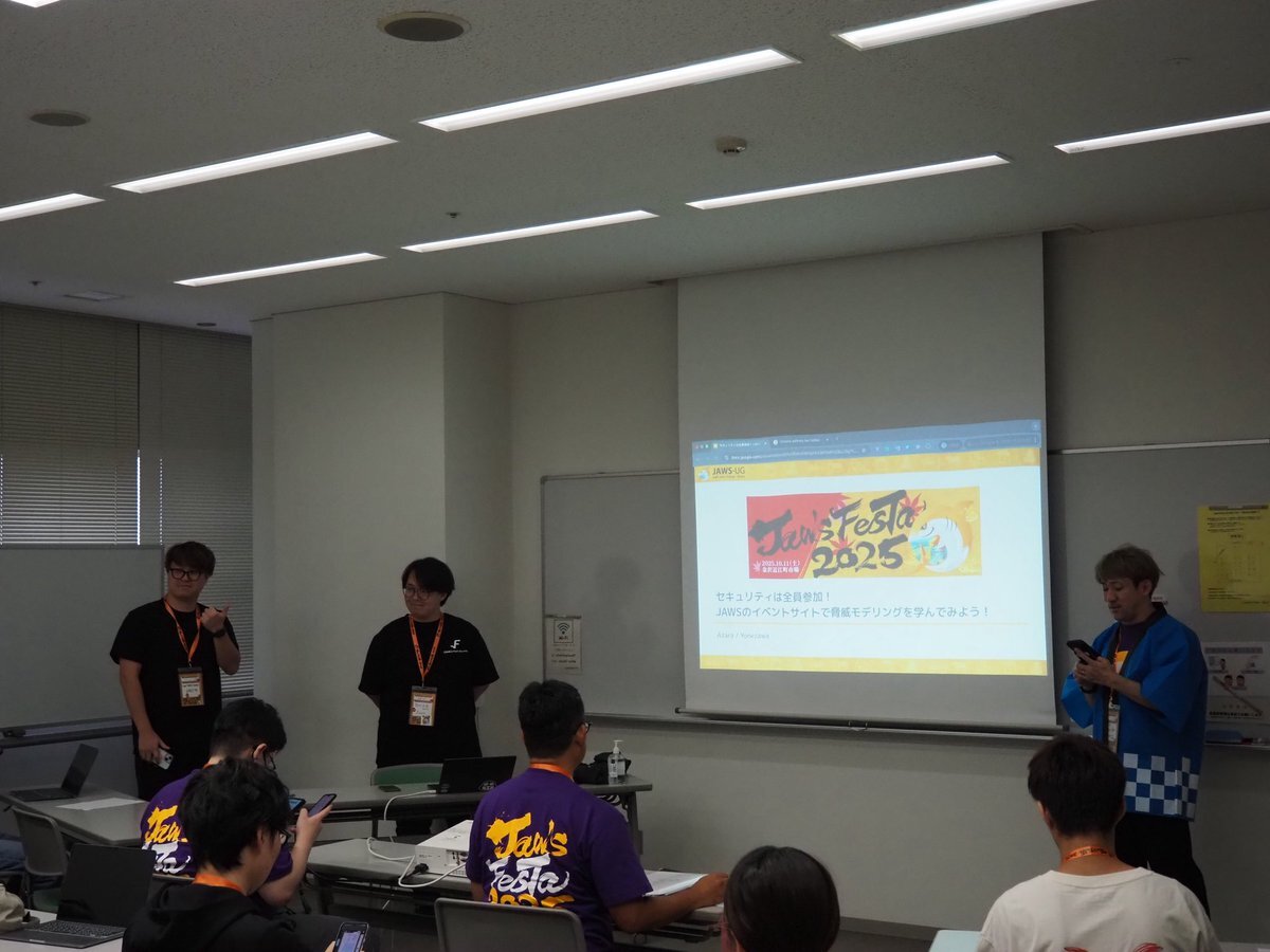 Azara さん、Takuya Yonezawa さんのセッション 「セキュリティは全員参加!JAWSのイベントサイトで脅威モデリングを学んでみよう!」 Security is job zero ですからね #jawsfesta2025 #jawsug #jawsfesta2025_e pic.x.com/MKRajhWiTN