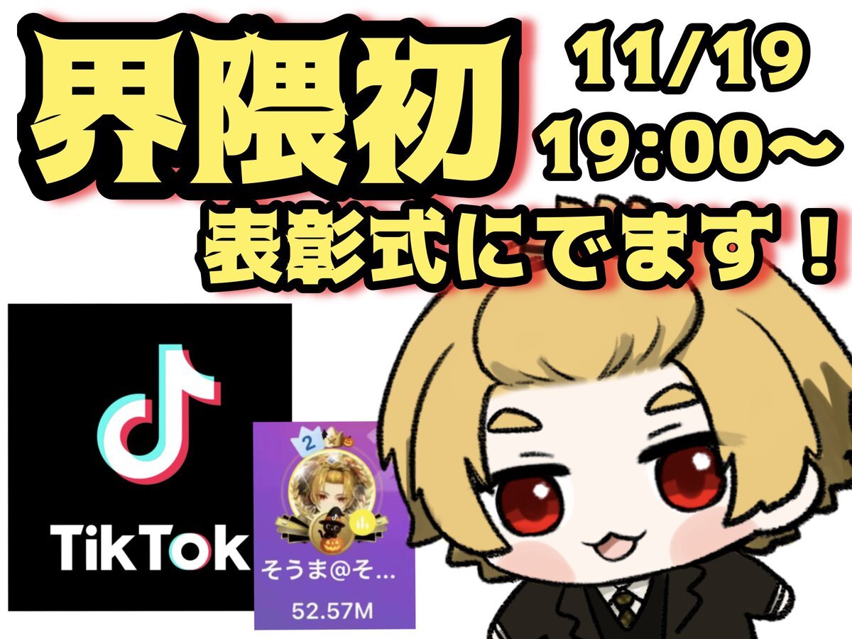 歌い手界隈初✨✨✨ TikTok盾イベントファンダム部門2位🥈で表彰式でます✨✨✨ 19日水曜日19時から!! TikTok公式放送お見逃しなく✨✨✨ 引用元いいねも宜しくお願いいたします🙏 #そうまくん #そま社長 pic.x.com/wJoEtjV2s7 x.com/so_ma_spiii/st…
