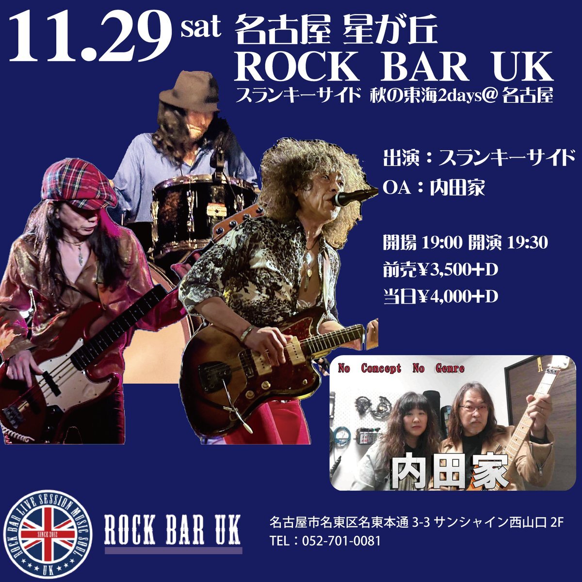 ■11/29(土)愛知名古屋星が丘 ROCK BAR UK ★出演 スランキーサイド OA:内田家 開場19:00 開演19:30 前売¥3,500 当日¥4,000+d rockbar-uk.com ▼前売予約 slunkyside.net/reserve pic.x.com/DTUToxIw5r