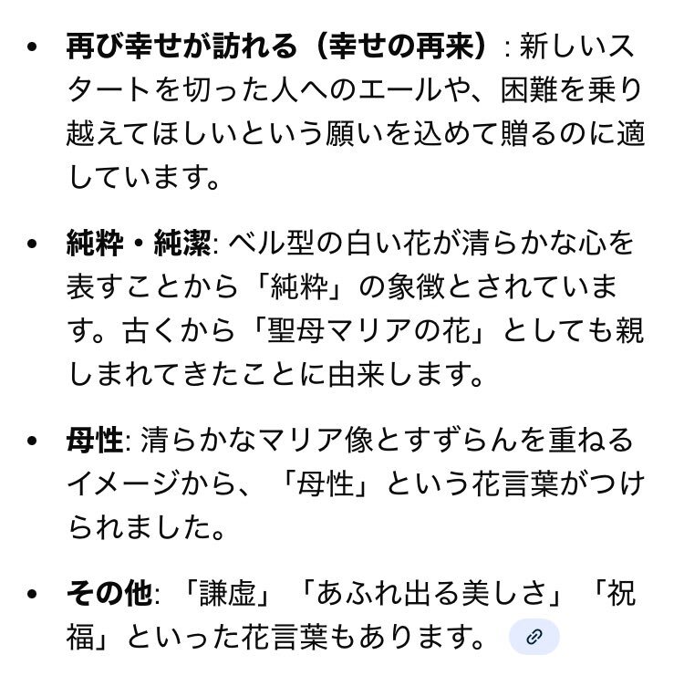 rp すずらんの花言葉調べて、二度と「ふふっ」となりました。 「純粋」とかの他に「再び幸せが訪れる」という意味もあるらしいです☺️