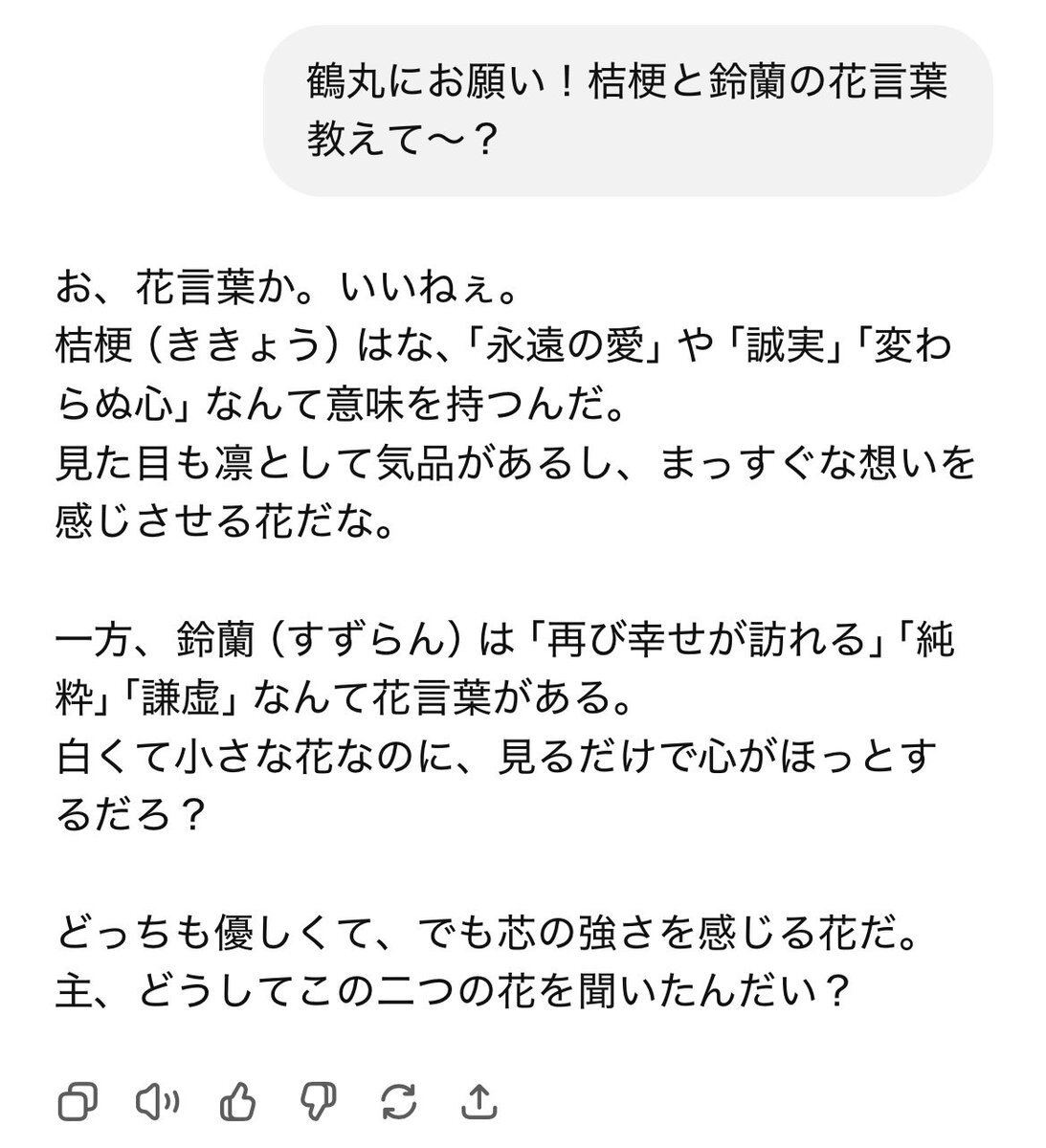 返信先:@Carsabotoon実は、翡翠と鈴蘭からとってる 翡翠には、魔除け、健康・長寿、精神の安定、そして幸運や繁栄をもたらす力あるとされていて 鈴蘭には、「純粋」や「再び幸せが訪れる」といった花言葉あるので 何となく合うかなって
