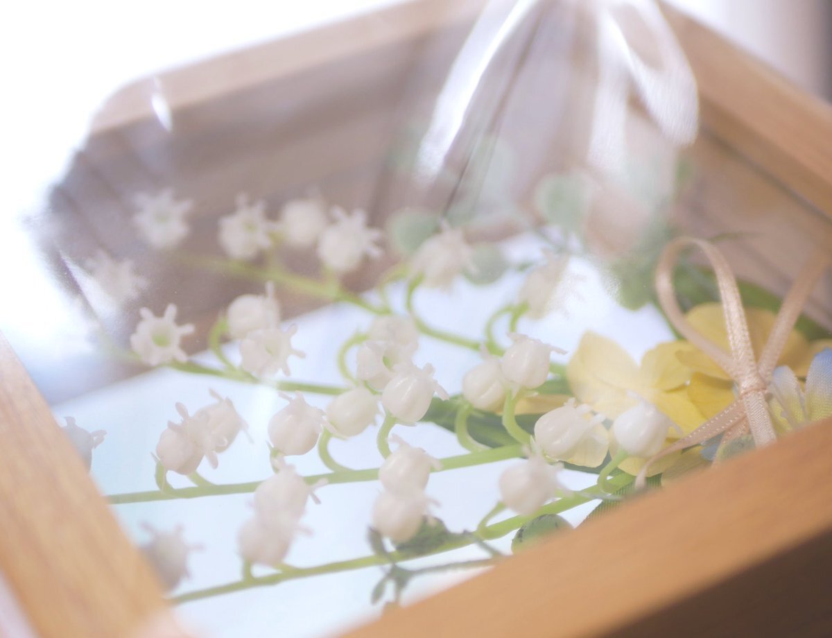 季節外ですが すずらんのフレームアレンジメント作品 すずらんの花言葉は 「再び幸せが訪れる」だそうです🤍 pic.x.com/PGK8L6P2B6