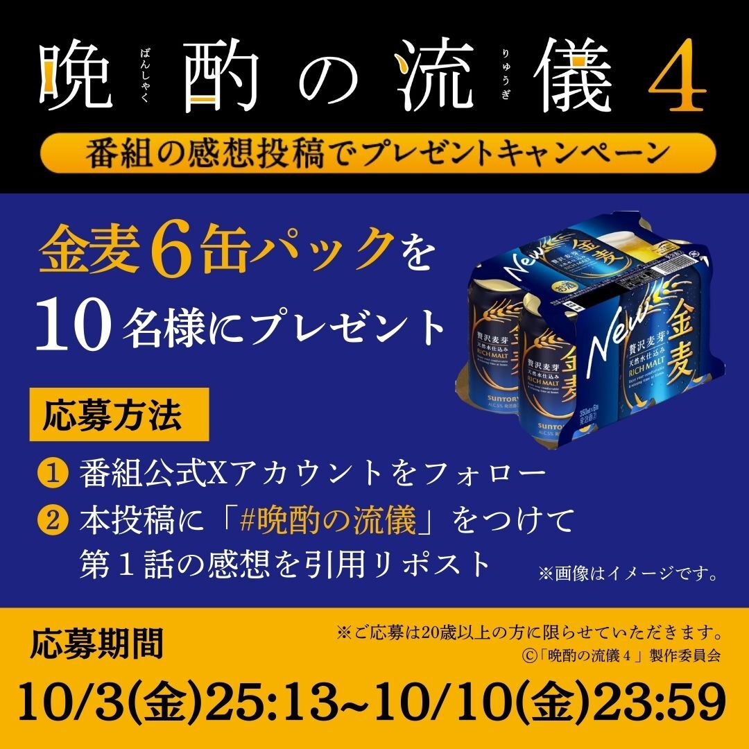 /⋰ 📢プレゼントキャンペーン🎁 \⋱ 『金麦6缶パック』を抽選で🔟名様にプレゼント🍻 【応募方法】 ① @tx_banshaku をフォロー ②本投稿に #晩酌の流儀 をつけて感想を引用リポスト ⏰対象期間 10月3日25:13〜10月10日23:59