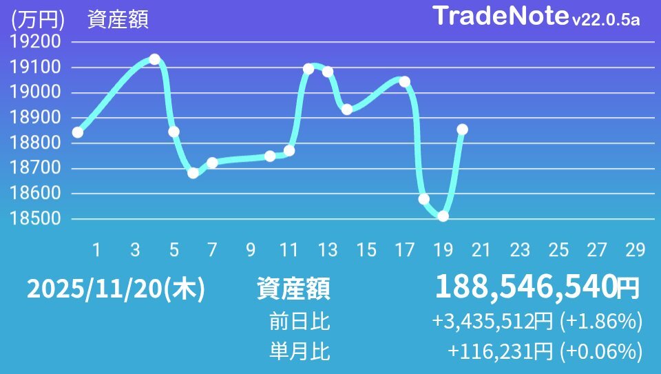 NVIDIA 好決算上げおめ。結果的には恐れていたもの全てが杞憂。多くの個人投資家が弱気にさせられて機会損失した諸悪の根源は「AI バブル」のワードを連発していた経済ニュース。まあ投資家心理が悲観に傾いてたおかげで上昇の結果となった面もあるとは思うので許す 🙄 #株式投資 #日本株 #TradeNote