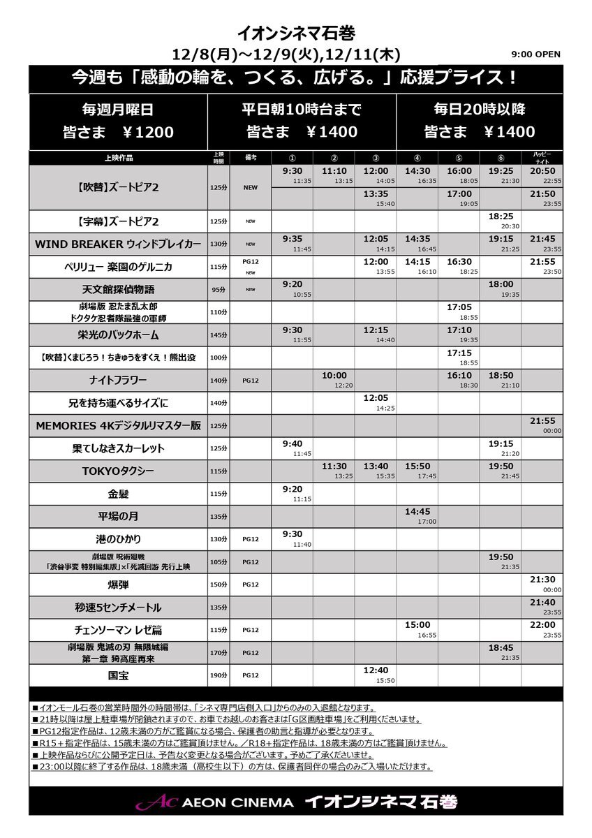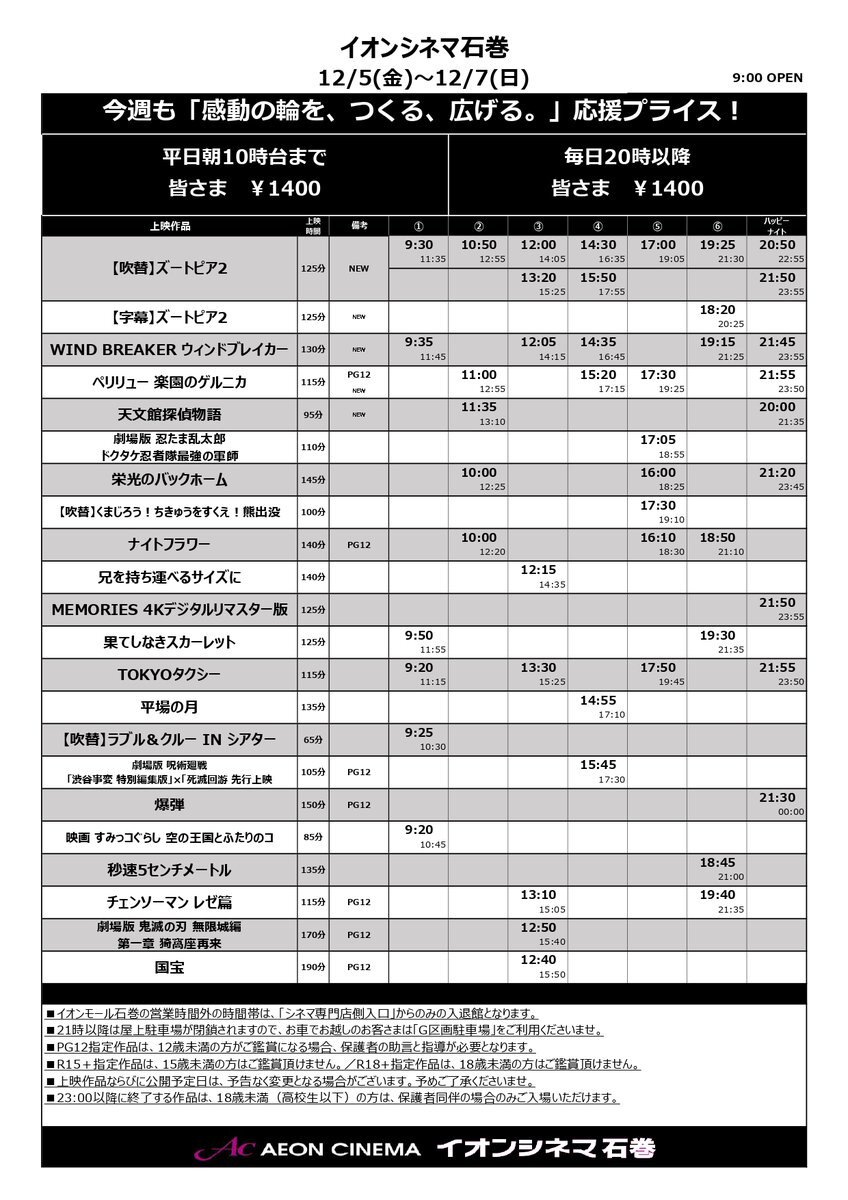 12/5(金)-12/11(木)の上映スケジュール 【新作】 #ペリリュー 楽園のゲルニカ #天文館探偵物語 #WIND BREAKER ウィンドブレイカー #劇場版 忍たま乱太郎 ドクタケ忍者隊最強の軍師 【再上映】 #ズートピア2【字・吹】 日によりスケジュールが異なります。 pic.x.com/M8pGN66waf