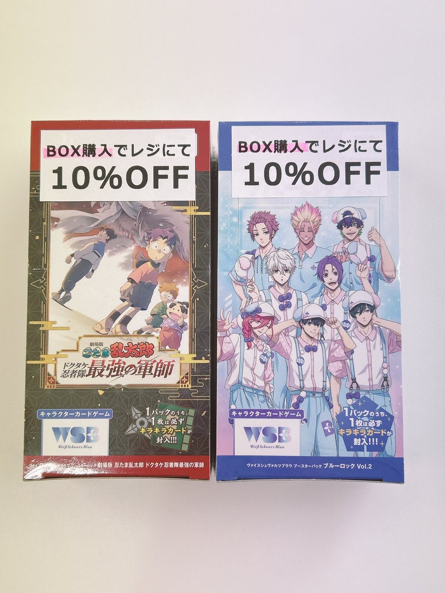 #WSB ヴァイスシュヴァルツブラウ ◼️ブースターパック ・劇場版 忍たま乱太郎 ドクタケ忍者隊最強の軍師 ・ブルーロック vol.2 BOX購入で10%オフです❣️ 店頭限定✨ pic.x.com/JxmMynDlio