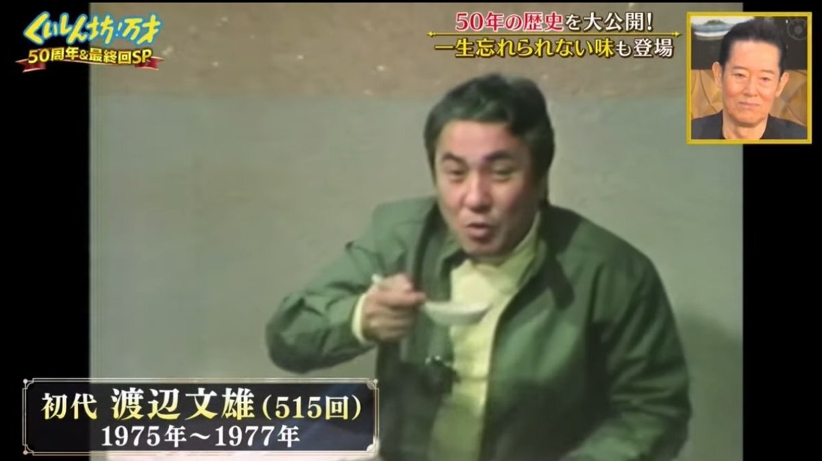 昨日やってた『くいしん坊!万才』の最終回特番。初代の渡辺文雄、2代目の竜崎勝の映像がちょっと流れたのは、うれしい。食べっぷりのいい竜崎を見て「カッコいいね」と声を上げる歴代レポーターに、忘れ形見である高島彩が「父も喜んでいると思います。うれしいです」と。