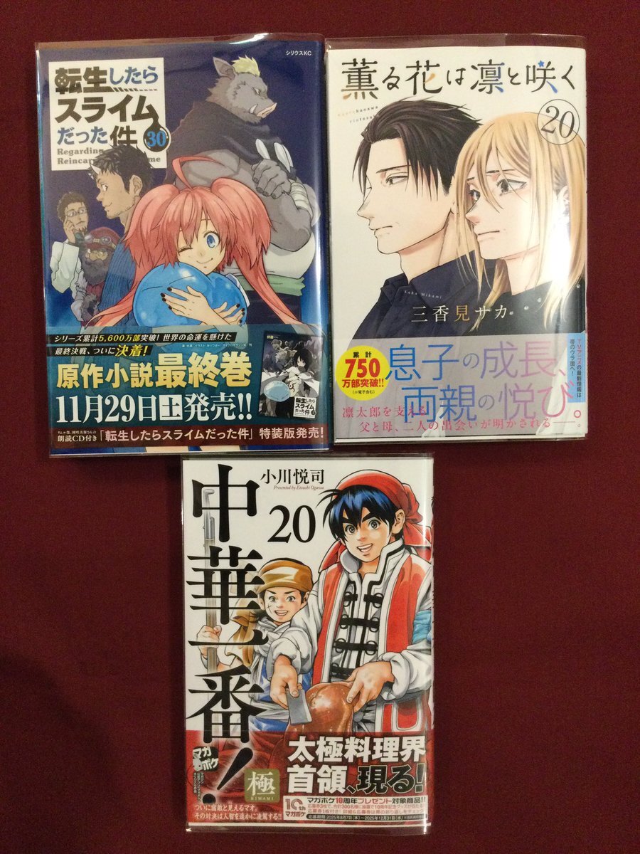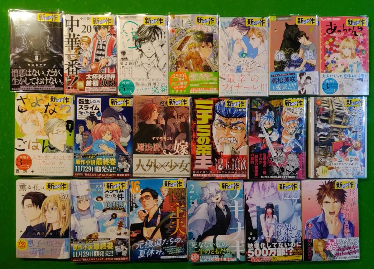 #新刊 #マンガのお知らせです📢 #魔法使いの嫁 #菌と鉄 #薫る花は凛と咲く #狼の娘 #ふしぎ遊戯白虎仙記 #転生したらスライムだった件 #転生したらスライムだった件美食伝 #十字架のろくにん #さよならごはん #極主夫道 ご来店お待ちしております🐳メディアカフェポパイ #八王子 店 pic.x.com/POWpO0m6xC
