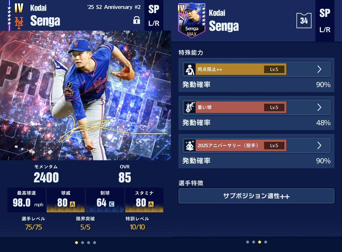 おはようございます😃 2人目のマスターは千賀滉大!!! グレⅢが手に入りやすくスムーズに凸進みました☺︎ 完凸時点で特能もMAXに出来るようにしっかり育成頑張っていきゃーす😌 早く皆さんと同じ目線になれるようにがんばるどー🔥 #メジャスピ #メッツ純正 pic.x.com/fW3zsVGuu5