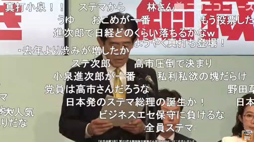 【悲報】自民党総裁選2025国会議員投票、ニコ生が24の例文で荒れる