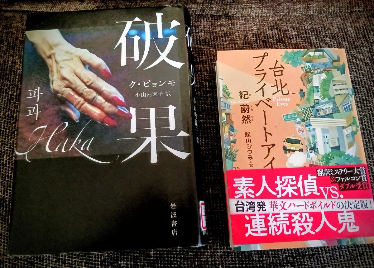 ラジオCMで流れた舞台のお知らせで思いだし、市の図書館サイトで予約した「#破果」。 「ノワール×おばあちゃん?!」の帯と書評で気になっていたのに忘れていた。 まだ購入した「台北プライベートアイ」を読み終えていないけど、借りた本なのでこちらを先に。 汚れないようジップロックに入れて携帯。 pic.x.com/i0DRH7spc1