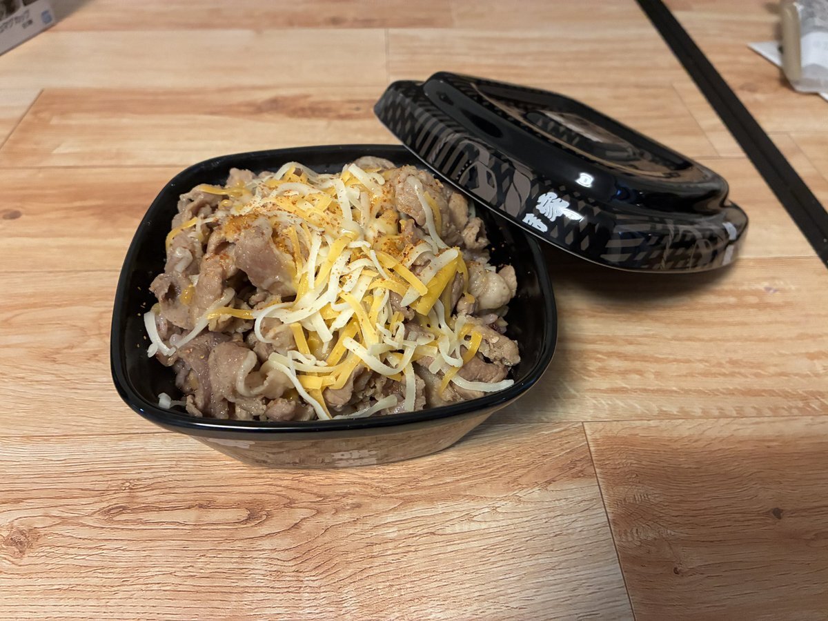 吉野家の一番くじA賞の容器風陶磁器でチーズ牛丼作ったらめっちゃいいやん! 紅生姜買い忘れたのが痛恨のミス pic.x.com/AlbnbHJAdE